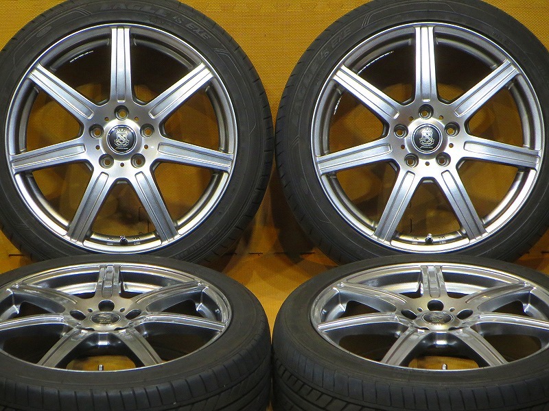 > 美品 溝あり【マナレイスポーツ 23年製グッドイヤーLS EXE 215/45R18】18インチ7J+48 PCD114.3-5H マツダ3 80系 ヴォクシー ステップワゴン
