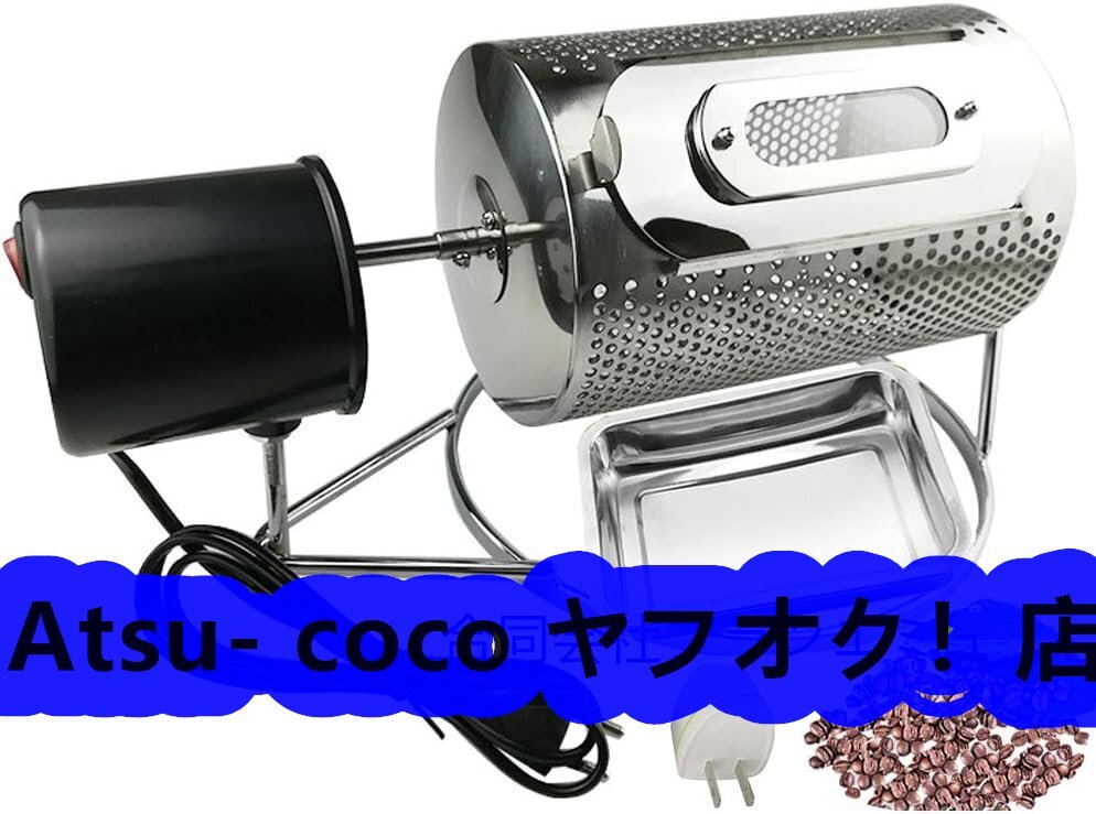 - コーヒーロースター 電動 焙煎機 直火 ガス 焙煎器 ドラム コーヒー 豆焙煎器 自動 小型 家庭用 業務用 ステンレス製 (多孔質焙煎器)