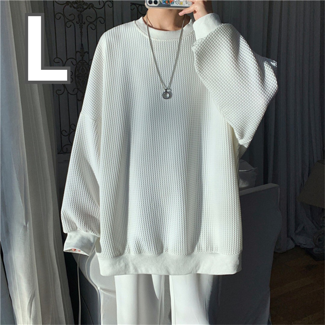 - Tシャツ 長袖 メンズ オーバーサイズ ワッフル地 おしゃれ プルオーバー L ホワイト 白