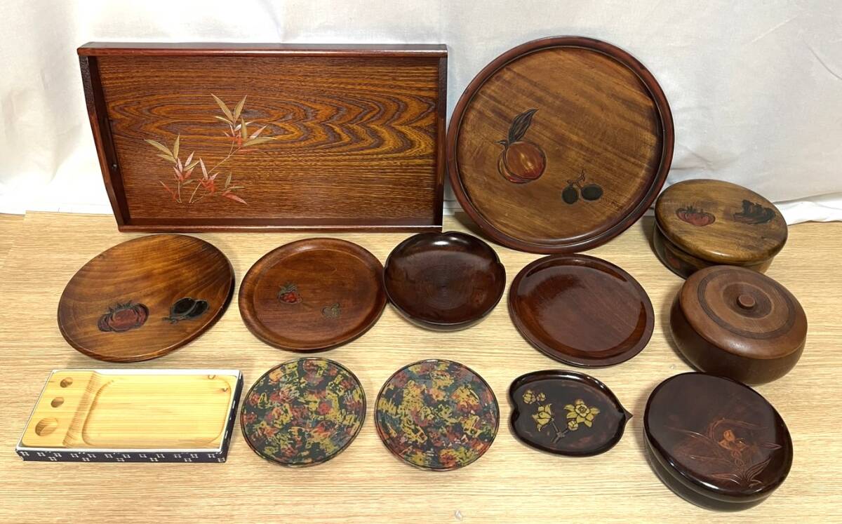 > 【M861】木製/食器/漆器/色々まとめ/13点/お盆/トレー/菓子入れ/漆器/木彫り/小皿/銘々皿/和食器/中古/現状品