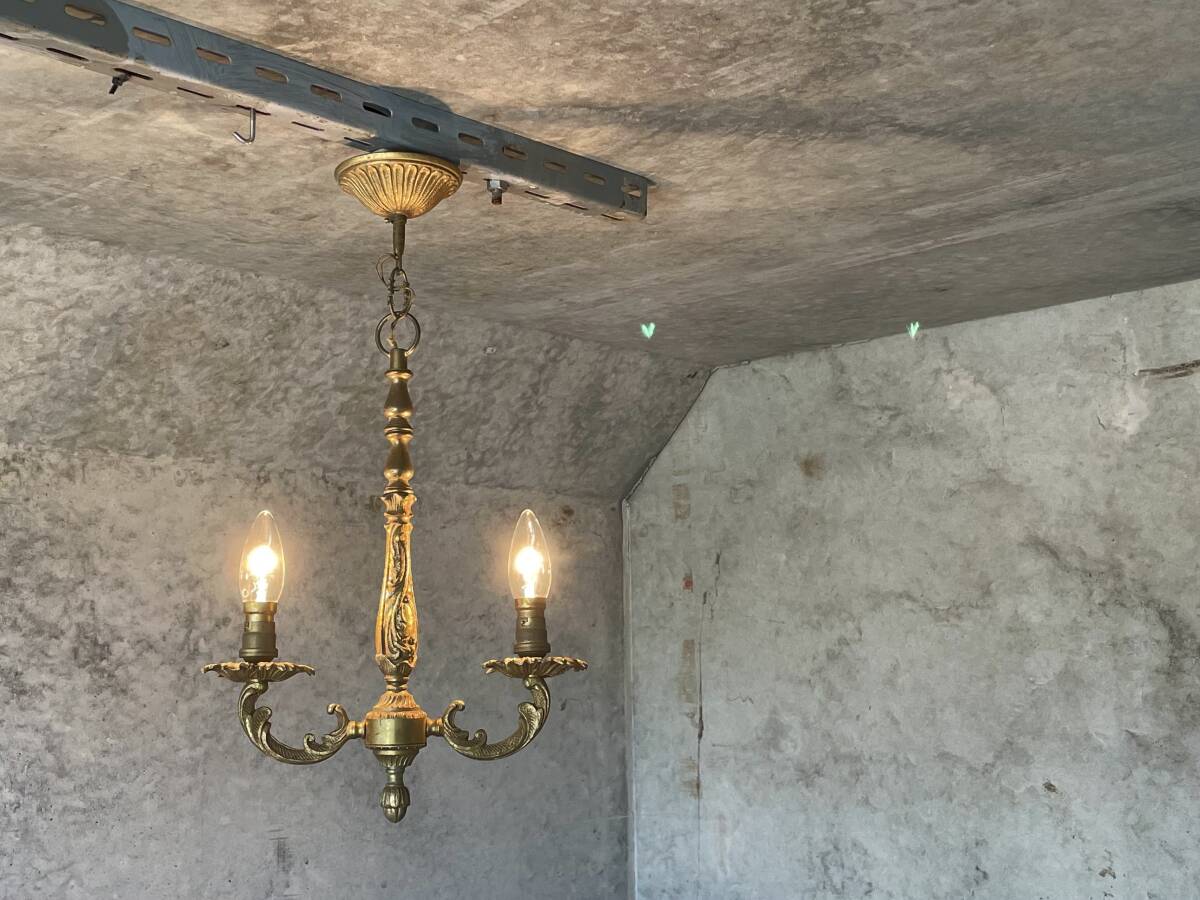- 希少!2灯 anchor! フランス アンティーク シャンデリア 2灯 キャンドル ライト 吊り下げ シーリング ブロンズ 店舗 什器 美容室 カフェ