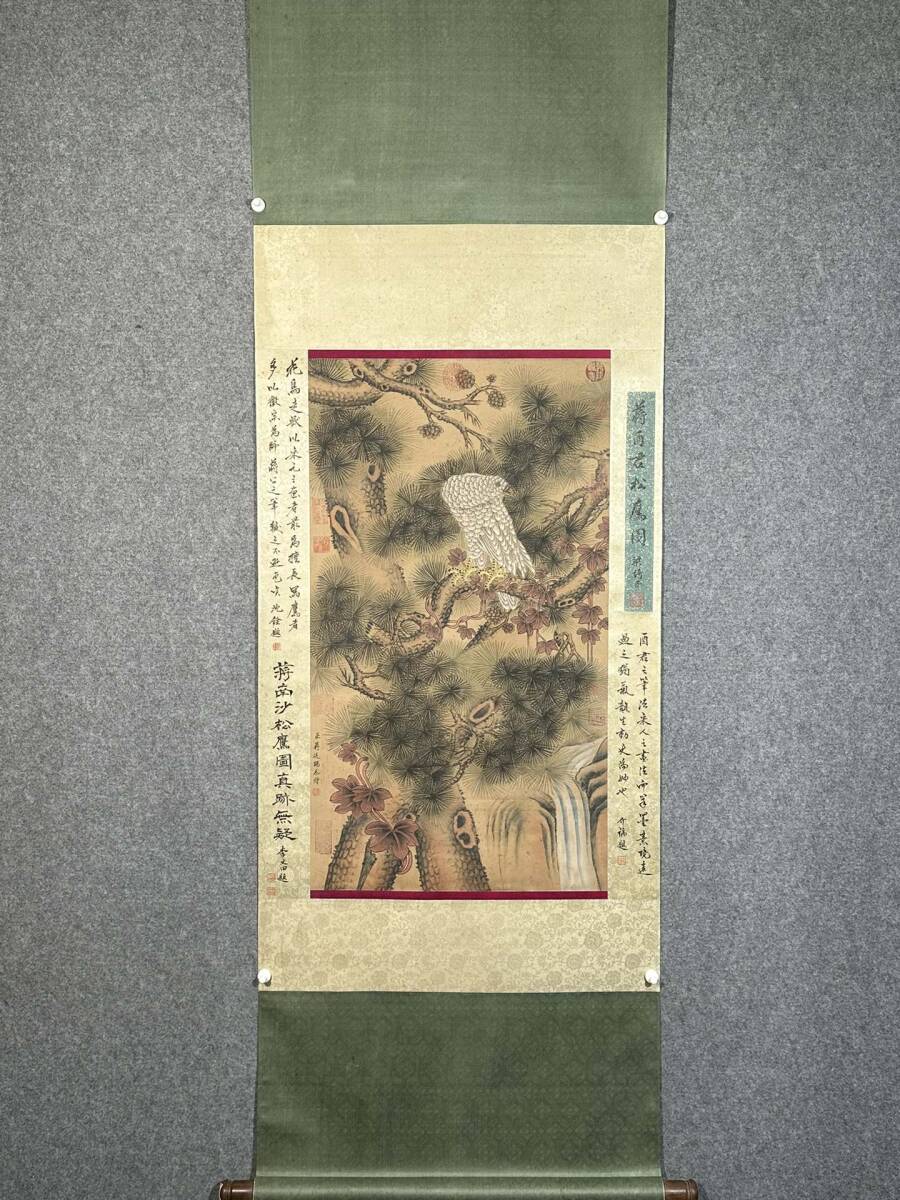 - TM7#5846【3.1】中国骨董 人間国宝 古代木工芸品 彫刻品 【清代-廷錫精品絹-松鷹図立軸】 時代物 本物 珍品旧蔵 伝世家珍