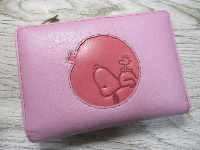 - 新品 財布 レディース 二つ折り L字ラウンド スヌーピー SNOOPY ブランド 本革 Fruits フルーツ 可愛いデザイン バイカラー ピンク