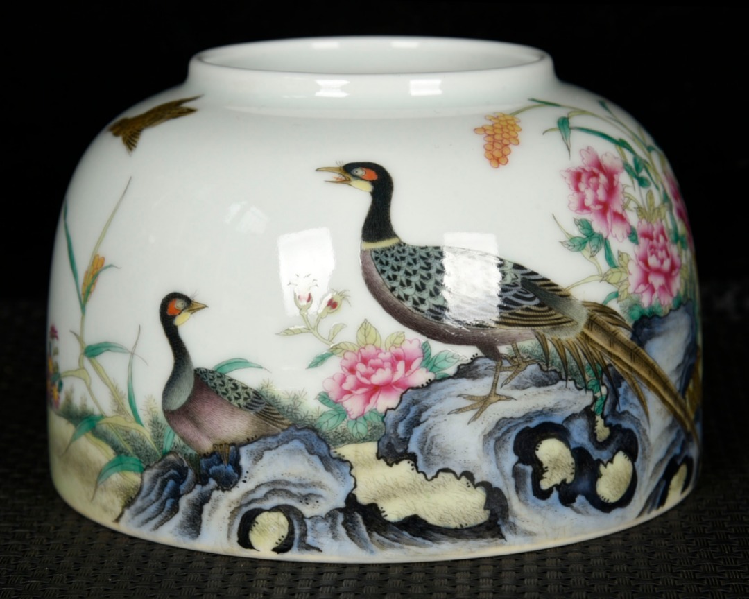 - NA118■大清雍正年製款 琺瑯彩芦雁花鳥紋筆洗 時代物 古玩 唐物 古陶磁器■