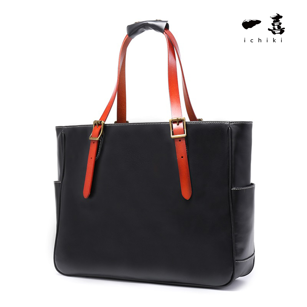 - 本革 ファスナー A4 調節可 トート ショルダーバッグ 2WAY ビジネス ヌメ革 栃木レザー ハンドメイド ブラック TC38