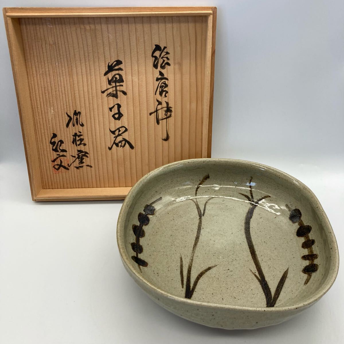 - M0731702B 絵唐津 菓子器 帆柱窯 中嶋紀文 紀文造 菓子鉢 皿 和食器 大皿 茶道具 工芸品 栞 当時物 中古品 現状品