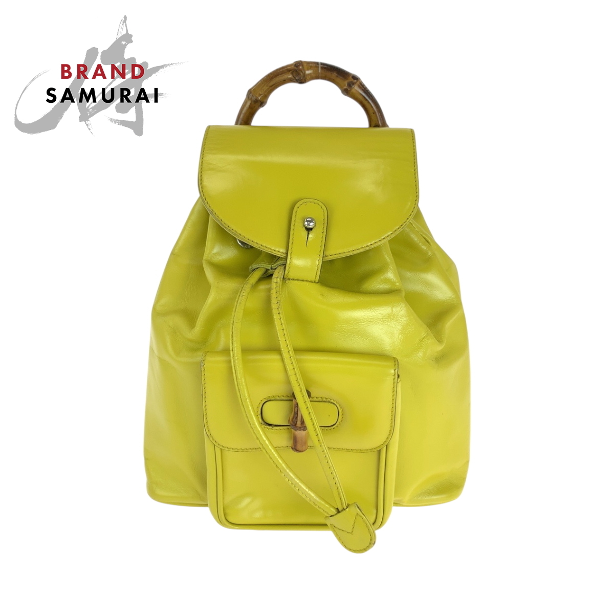 > 美品 GUCCI グッチ ヴィンテージ バンブー イエロー ブラウン シルバー金具 レザー 003 2034 0030 リュックサック バックパック 504723