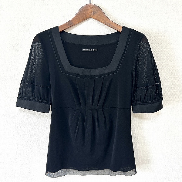 - #snc ヴィヴィアンタム VIVIENNE TAM カットソー 0 黒 パワーネット フリル 異素材 美品 レディース [956652]