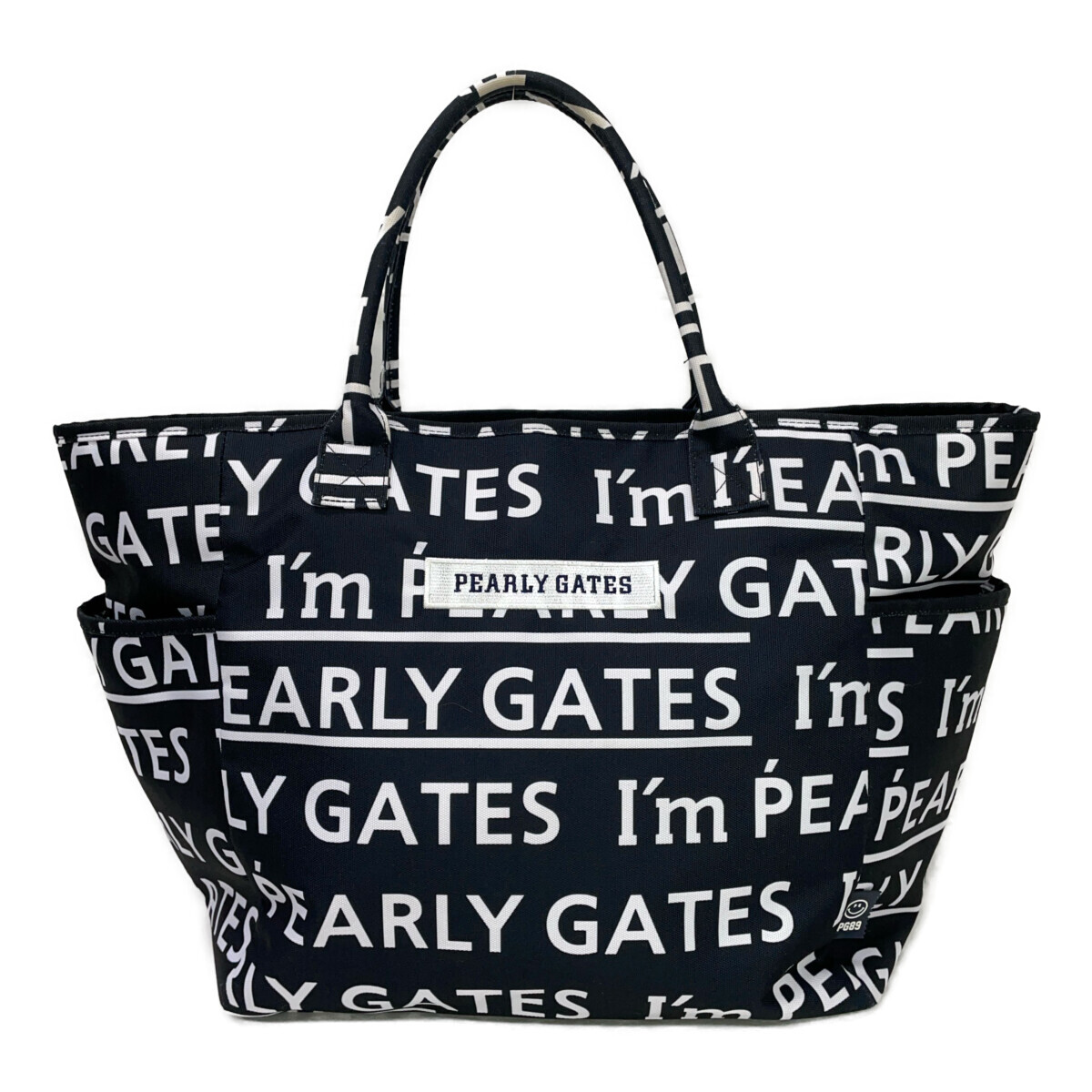 - coco 中古 パーリーゲイツ PEARLY GATES トート型ボストンバッグ ネイビー 紺 ロゴ総柄 ロッカーバッグ シューズポケット付き K020083