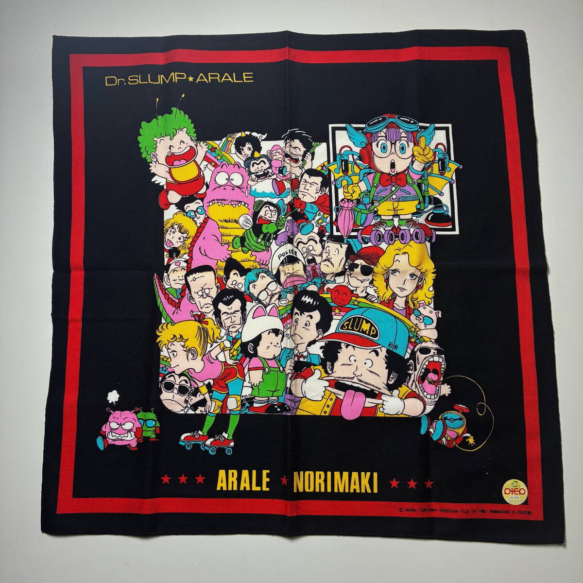 > ★Dr.スランプ アラレちゃん★鳥山明 グッズ ハンカチ 黒地 42×42cm タペストリーにも★AKIRA TORIYAMA/ドクター/ガッチャン/木緑あかね