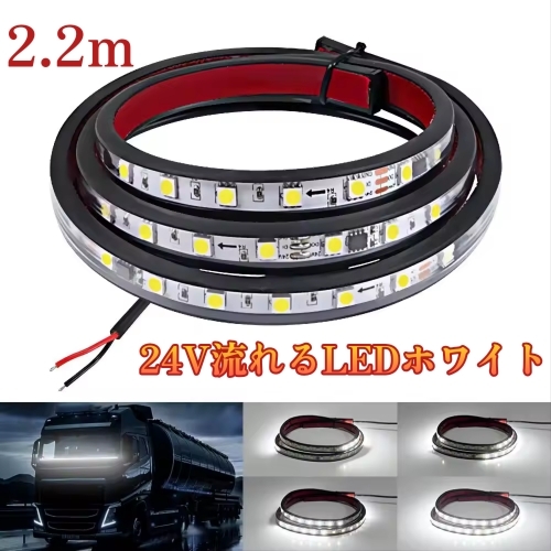 > スーパーブライト 24V LED 流れる ホワイト 白光 テープライト 車 LEDテープ 流星 トラック LED テープ ライト 防水 汎用品 2.2m