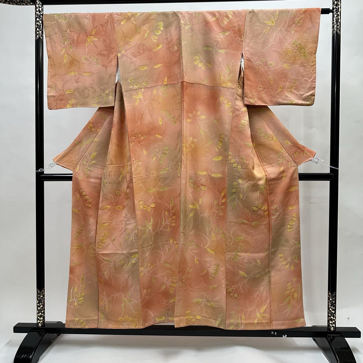 > 【七福】c712 正絹 小紋 地模様 織花 暗文 地文起こし 袷 着物 仕立て上がり 逸品 身丈 約151cm 裄 約65cm