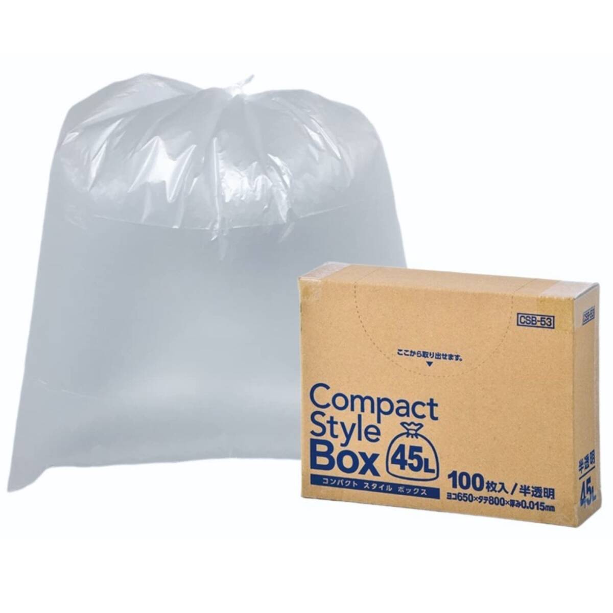 - CSB53 コンパクトスタイル 45LBOX半透明100枚 容量100枚 ジャパックス ゴミ袋・ポリ袋