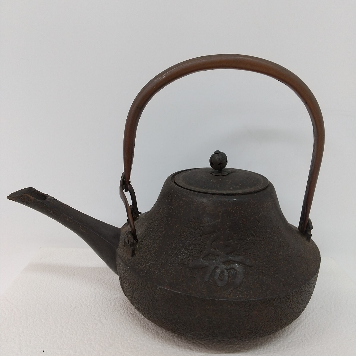 - 411 中古 寿文字入り 鉄瓶 急須 お屠蘇 おとそ 菊の花 寿紋鉄製 菊花 酒器 鉄製 行事 厄除け 縁起物 レトロ