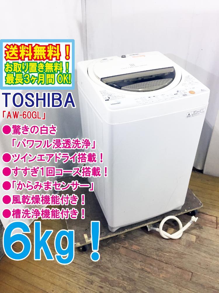 > ◆送料無料★ 中古★TOSHIBA 6㎏ 取り出しラクラク「からみまセンサー」ツインエアドライ搭載!! 洗濯機【◆AW-60GL】◆B5G
