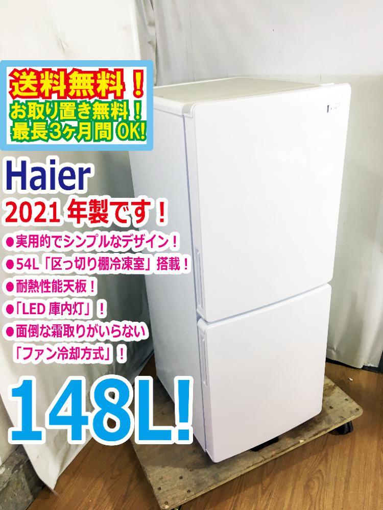 > ◆送料無料★2021年製★ 中古★Haier☆148L☆2ドア冷凍冷蔵庫☆右開き☆54L「区っ切り棚冷凍室」!!耐熱性能天板【◆JR-NF148B-W】◆B2S