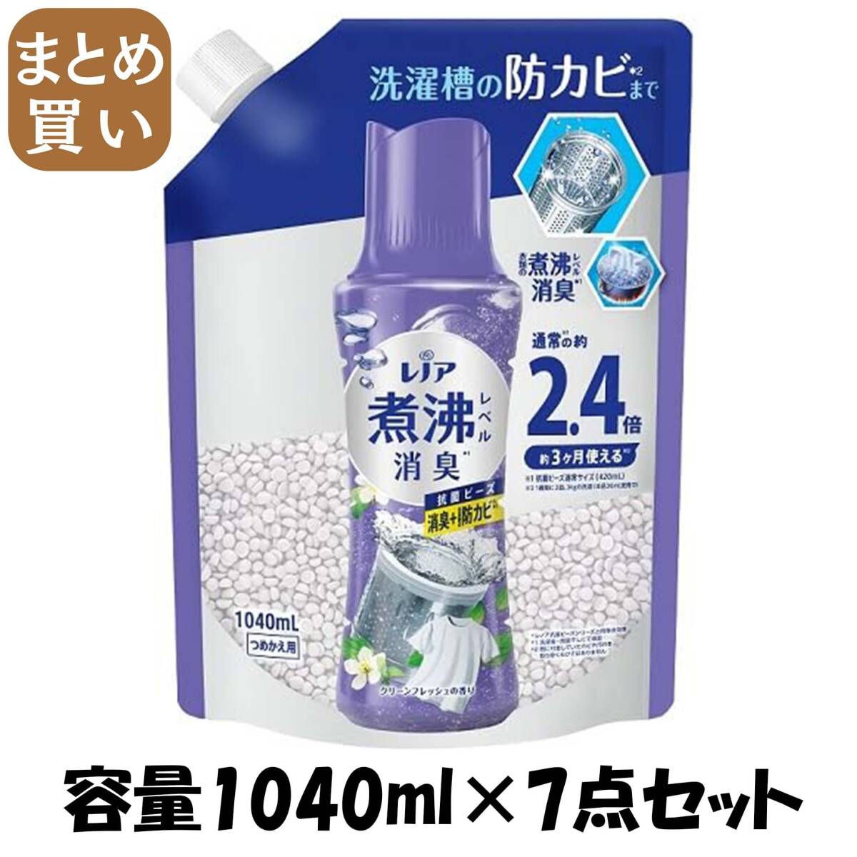 - 【まとめ買い】レノア煮沸レベル消臭抗菌ビーズ 洗濯槽の防カビ クリーンフレッシュの香りつめかえ用特大 容量1040ML×7点セットP&G