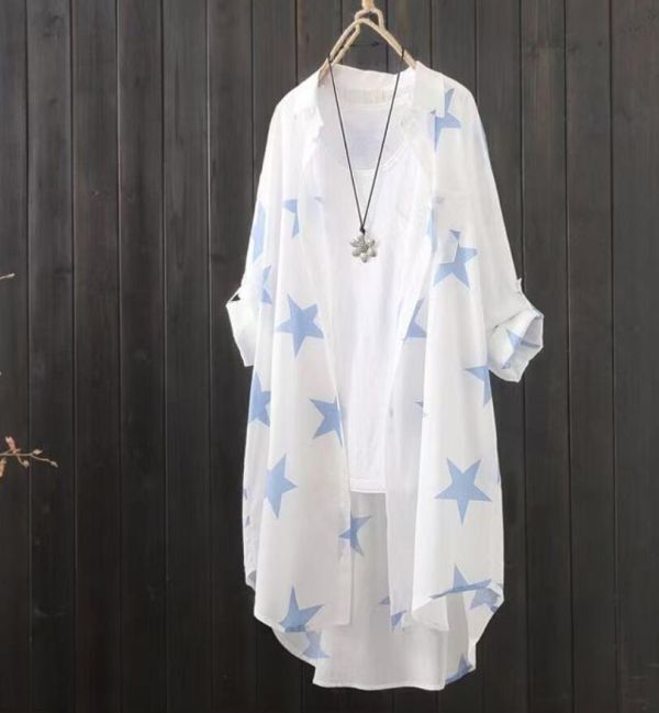> 新入荷 * オシャレ 薄手 ロングシャツ カーディガン プリント柄 日焼け止め 冷房対策 オフィス 通勤 大きいサイズ 長袖 シャツ * ブルー