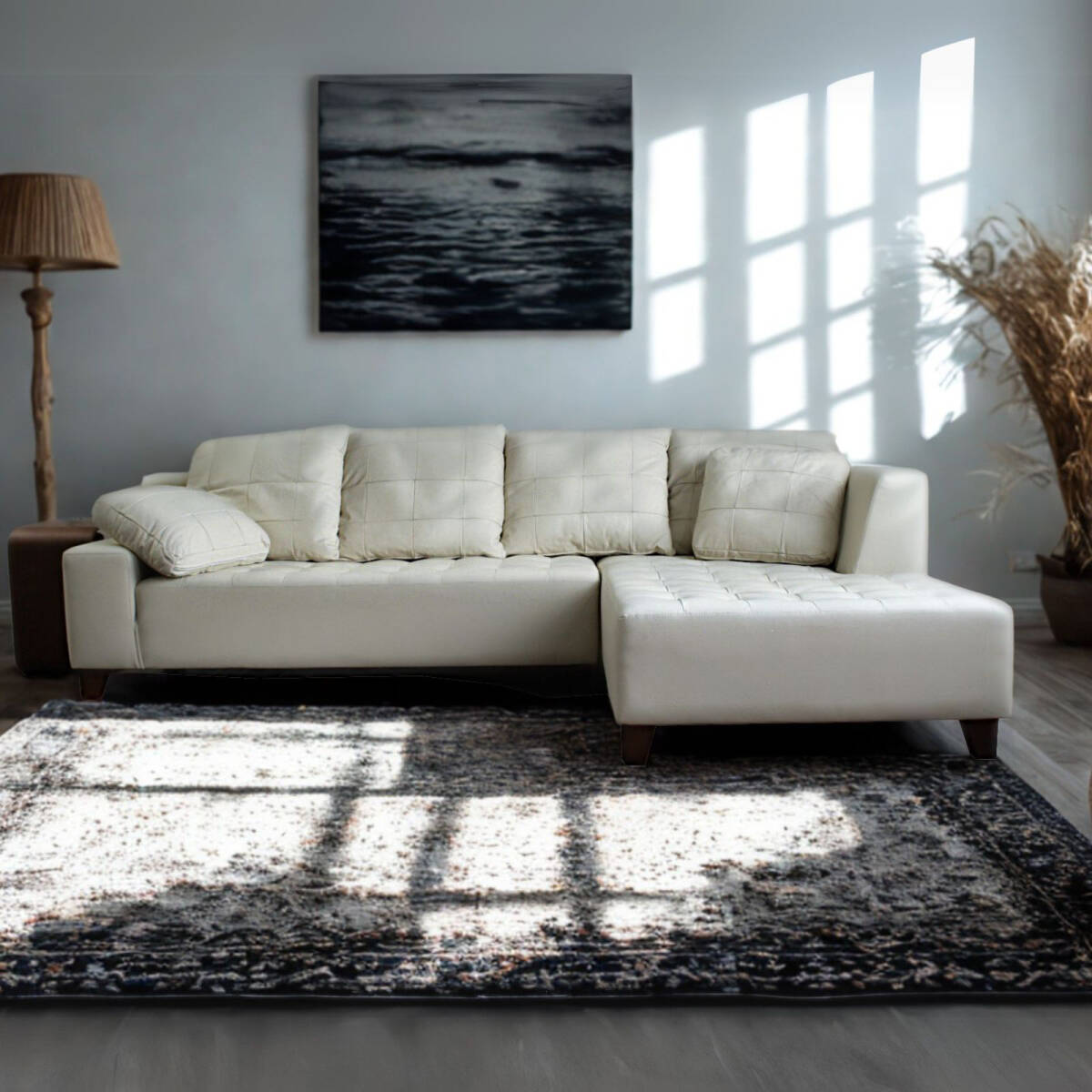 - 送料無料 ソファ カウチソファ 3人掛けソファ コーナー L字 オフホワイト 幅246cm 【カウチ座:座って左】 本革 半革 1mm厚 179DP-2PC