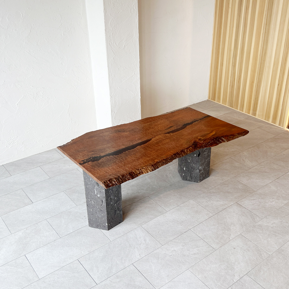 - ダイニングテーブル ボセ 一枚板 無垢板 ウレタン塗装 天然木 レジンテーブル 幅150cm 83cm 高さ70.5cm 天板厚30mm