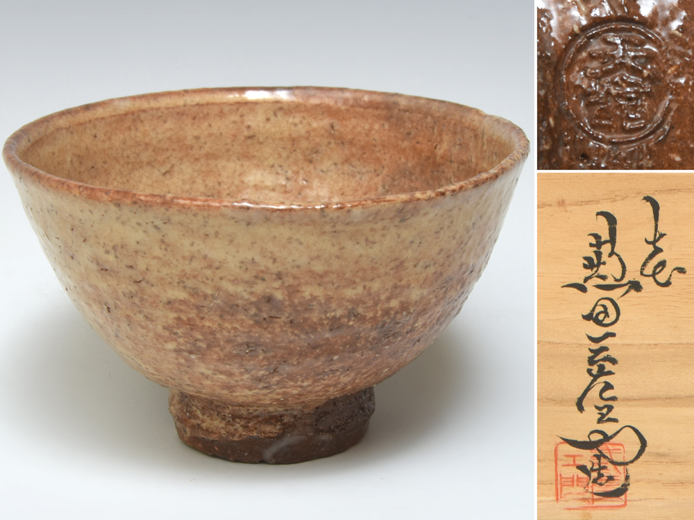 - 七代 兼田三左衛門・天寵(造)萩茶碗 共箱 しおり 茶道具 陶磁器 山県麗秀、兼田徳蔵、虎槌に師事 u0712o
