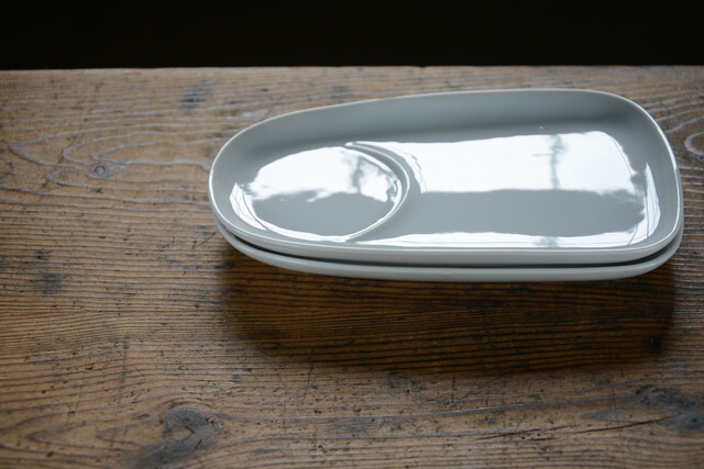 > NO.141 古い白磁のモーニングプレート 2枚SET 未使用品 検索用語→A昭和レトロ古道具ヴィンテージ古道具お皿仕切り皿デッドストック