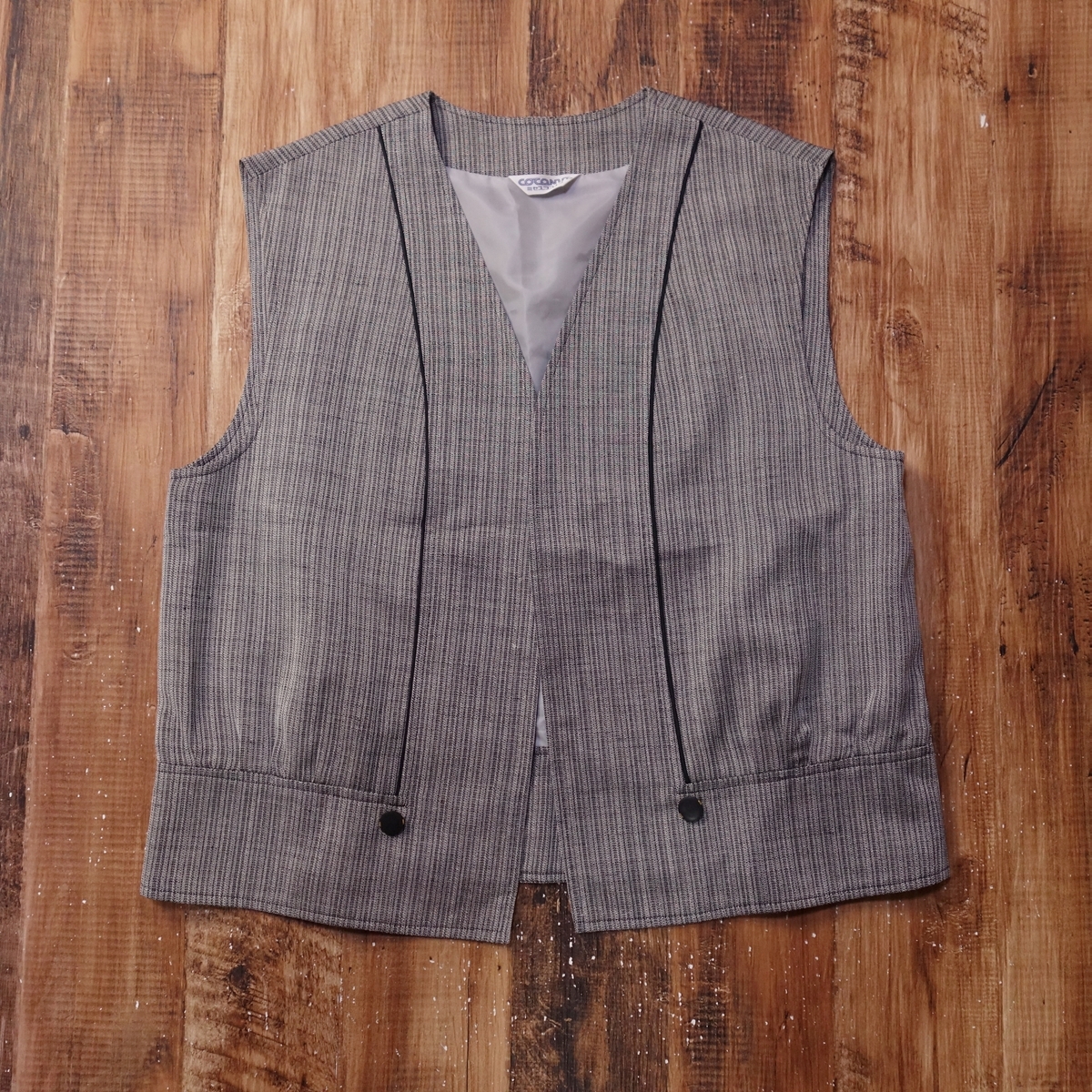 > 未使用 ココナット COCONUT ストライプ柄 Vネックベスト レディース ジレ 重ね着 日本製 LLサイズ グレー PV3
