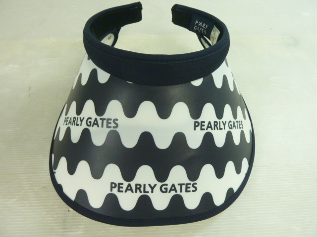 - r172I PEARLY GATES パーリーゲイツ UVサンシェード サンバイザー ニコちゃん 総柄 ネイビー系 日よけ ゴルフウエア