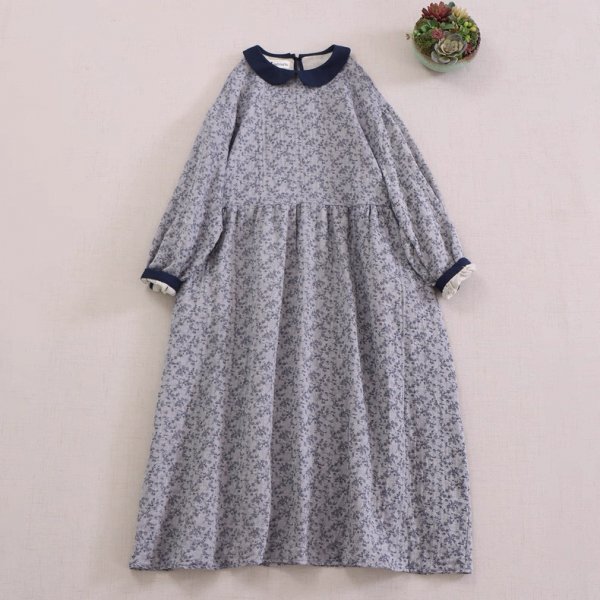 > lb 0708 ワンピースフリーサイズ チュニック トップス ナチュラル 綿100% 大人可愛 プリント花柄 切り替え 1