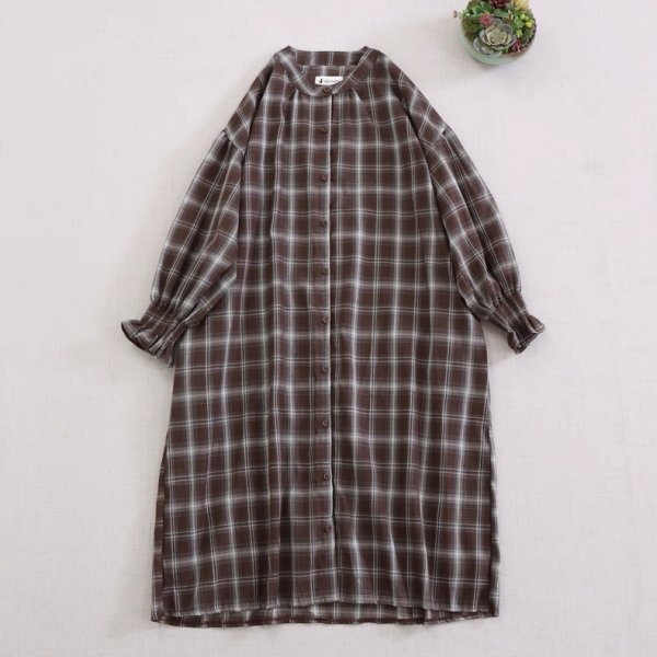 - lb 0708 カーディガン シャツワンピース フリーサイズ チュニック トップス ナチュラル 綿100% コットン 大人可愛 チェック柄1