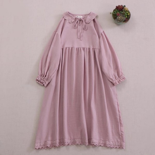 > lb 0708 ワンピース フリーサイズ チュニック トップス ナチュラル 綿100% 大人可愛 ゆったり レース 重ね着用にも 3
