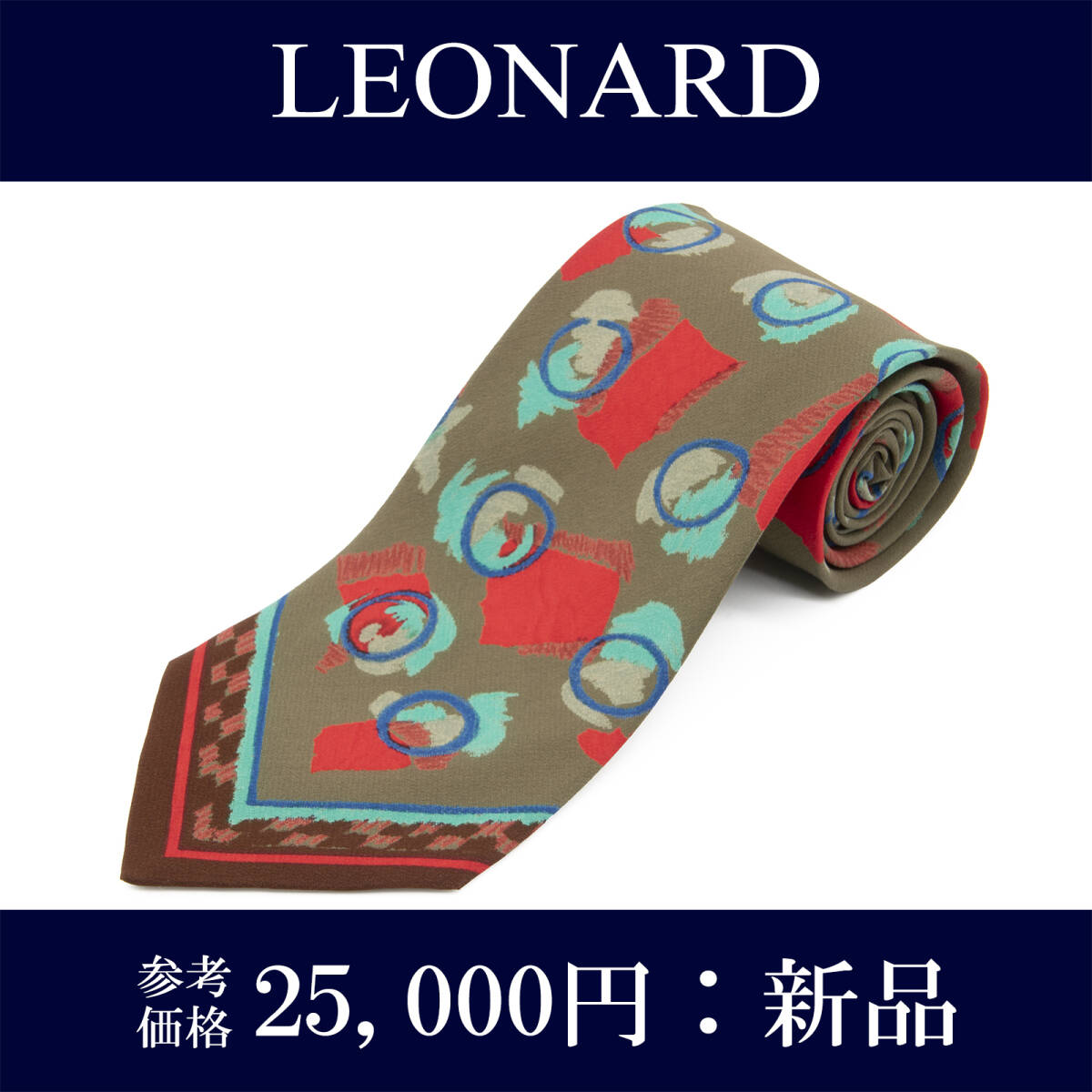 - 送料無料 レオナール ネクタイ レギュラータイ 新品 シルク グレーグリーン 赤 青 水色 グレーベージュ 茶色 ブランド イタリア 綺麗 N805