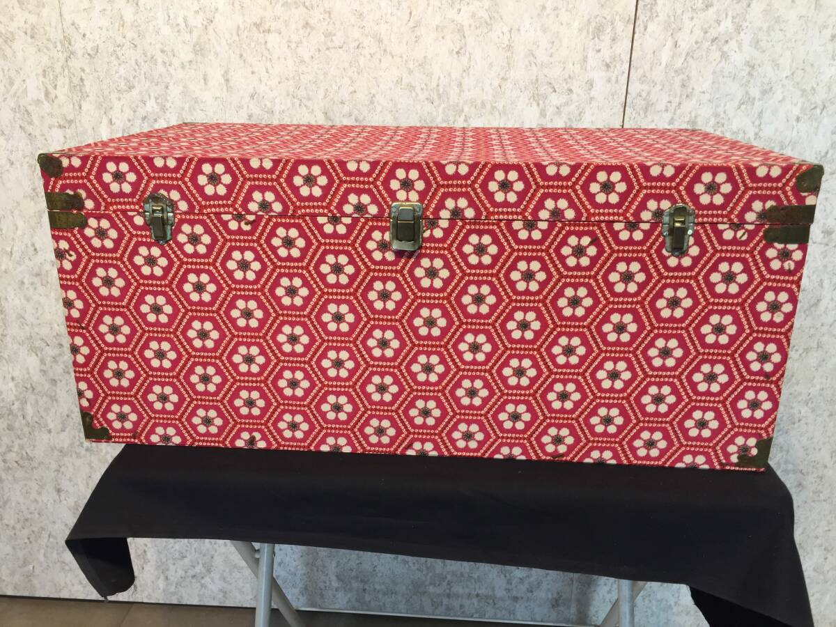 - 『 木製衣装箱 』F6 赤柄 長持ち 衣装木箱 衣装ケース 木製収納箱 小物入れ 道具箱 トランク レトロ アンティーク ★古時家★