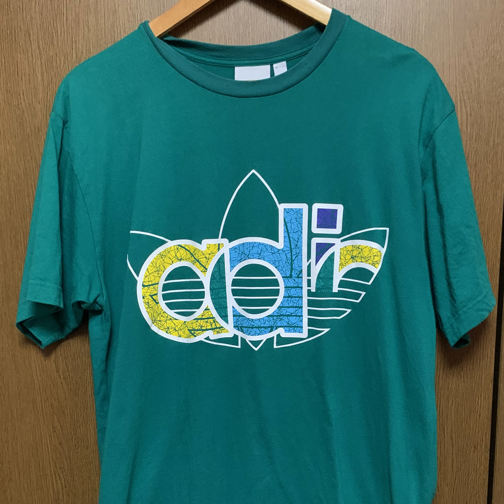 - O【adidas|半袖Tシャツ】アディダス グリーン系 プリントTシャツ M~L位