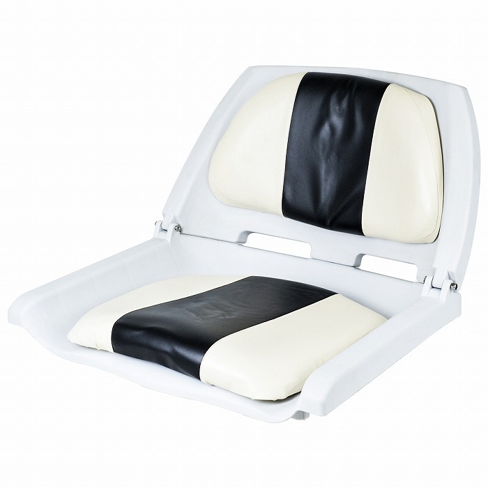 - ボートシート 白×紺 ボート 船 イス 椅子 マリン シート 折りたたみ式 釣り クルージング 合成皮革 幅広 スイベル 穴有