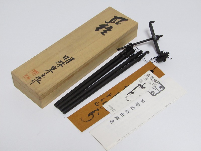 - 明珍 火箸 鉄製 風鈴 第五十一代 明珍宗之 在銘 共箱 hi03-8347[GGG] ①