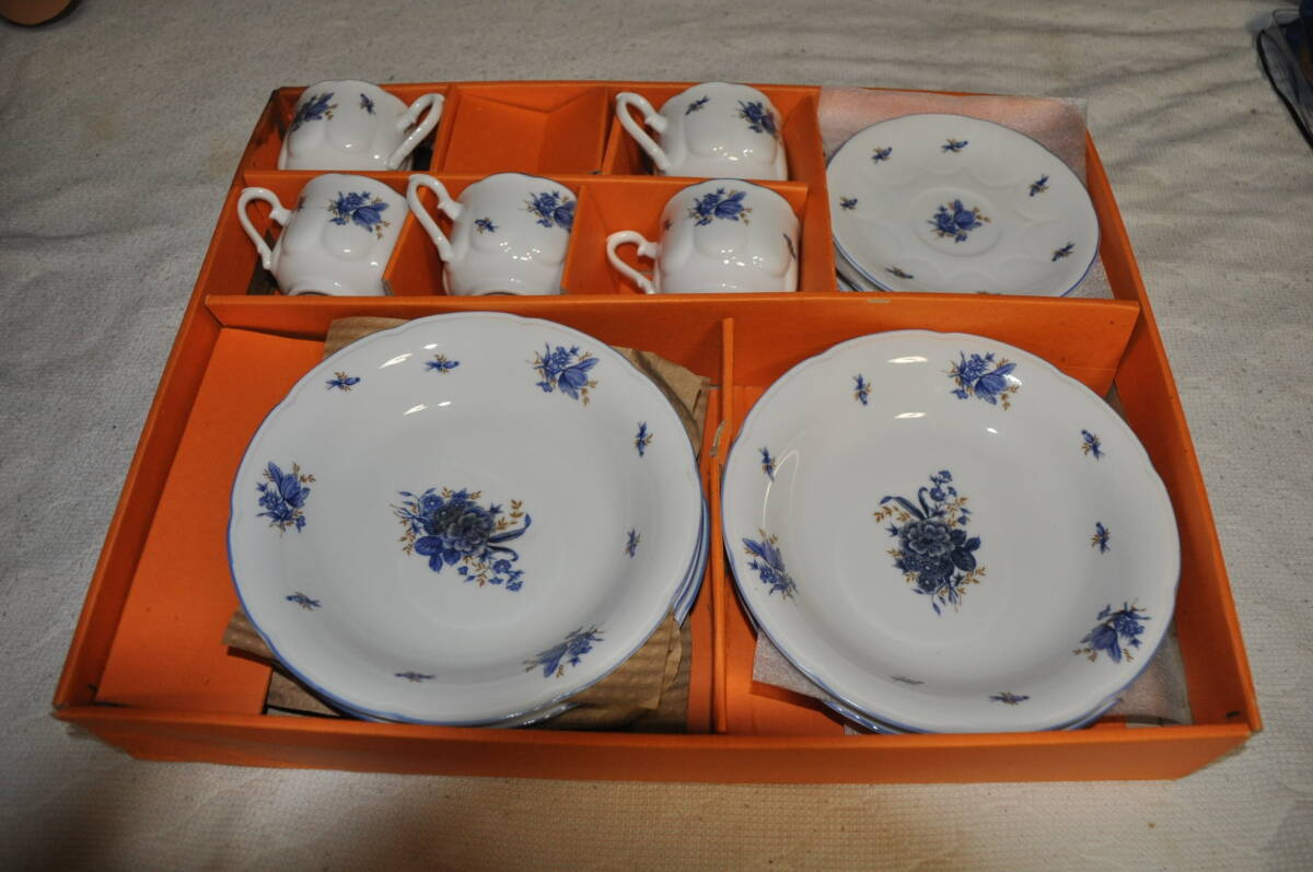 - 中古 made in Japan mino China(ミノ・チャイナ)製 スープ皿5枚・ティーカップ5個・ティーソーサー5個セット
