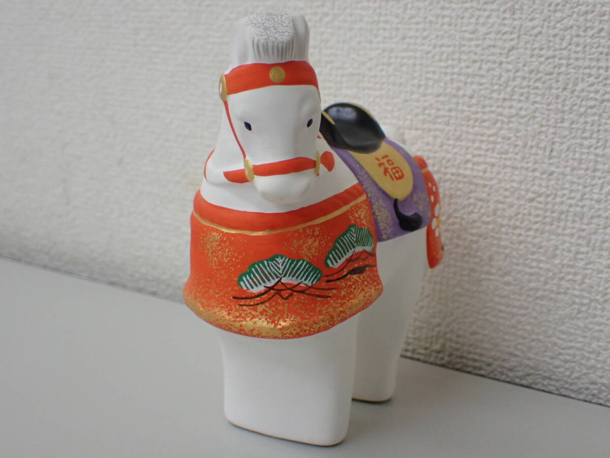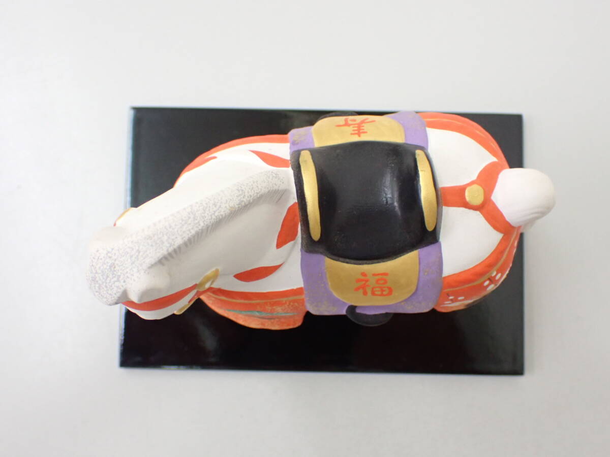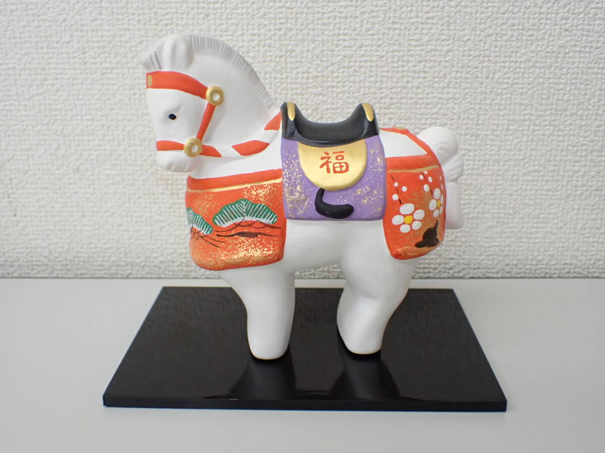 - 261-; 小田益三 京陶人形 馬 福寿 松梅 高さ;約11.6×幅;11.5×奥行;6cm 飾り台付き ★