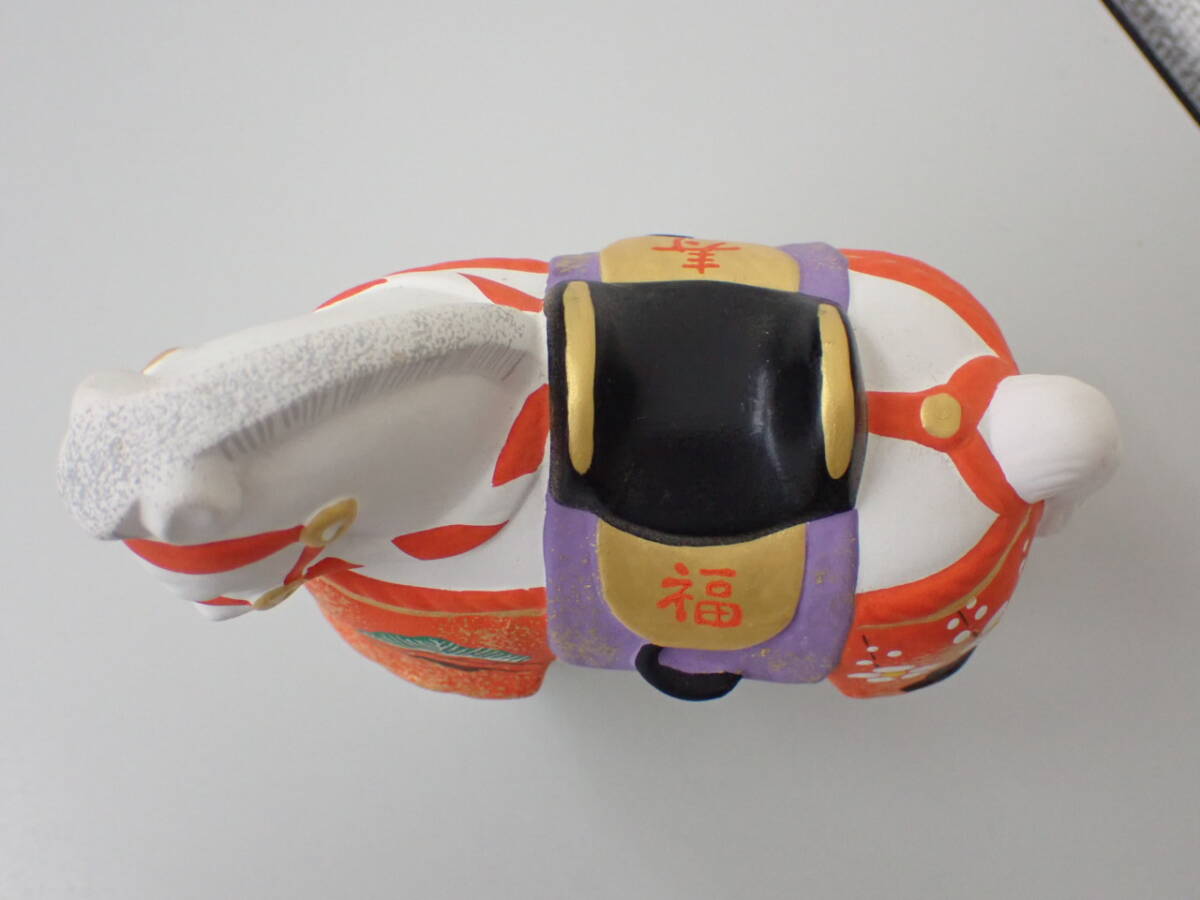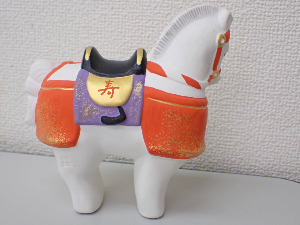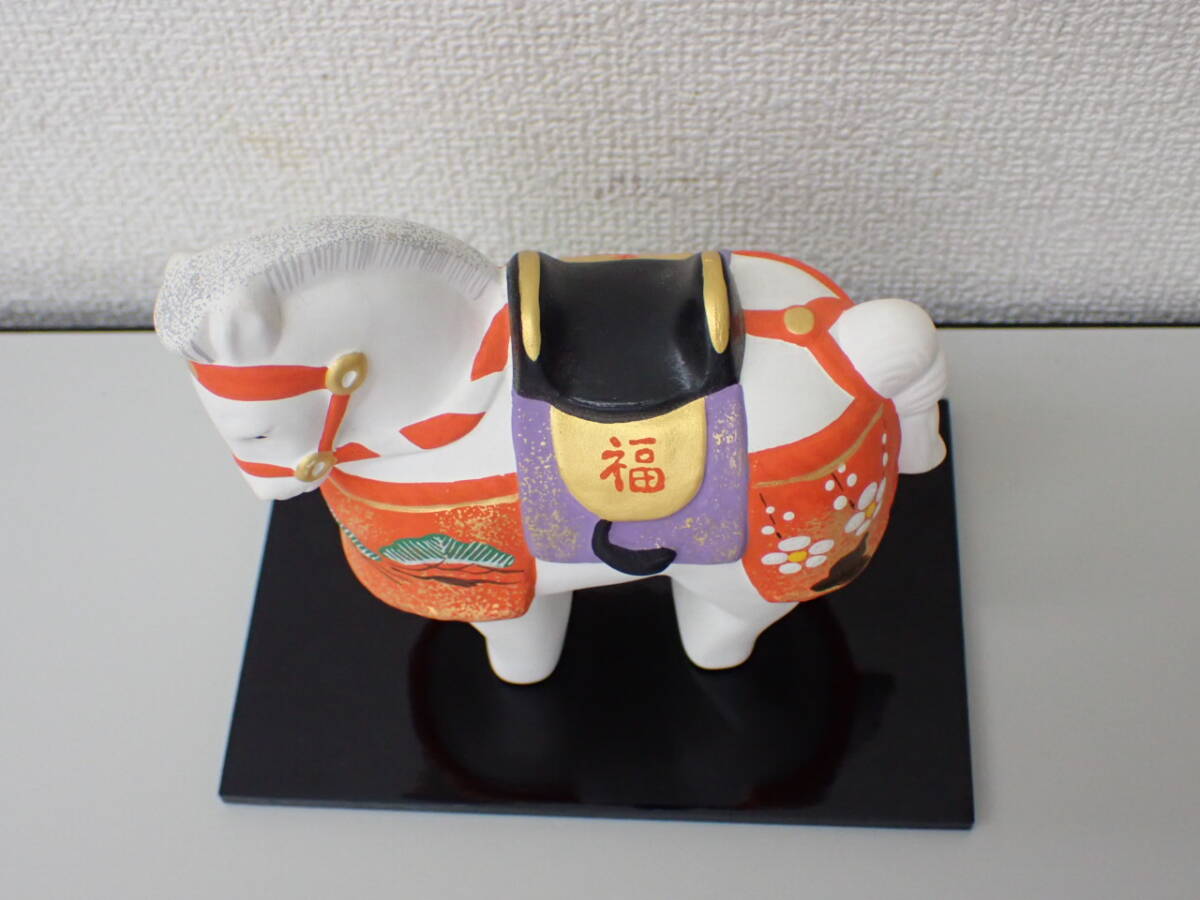- 261-; 小田益三 京陶人形 馬 福寿 松梅 高さ;約11.6×幅;11.5×奥行;6cm 飾り台付き ★