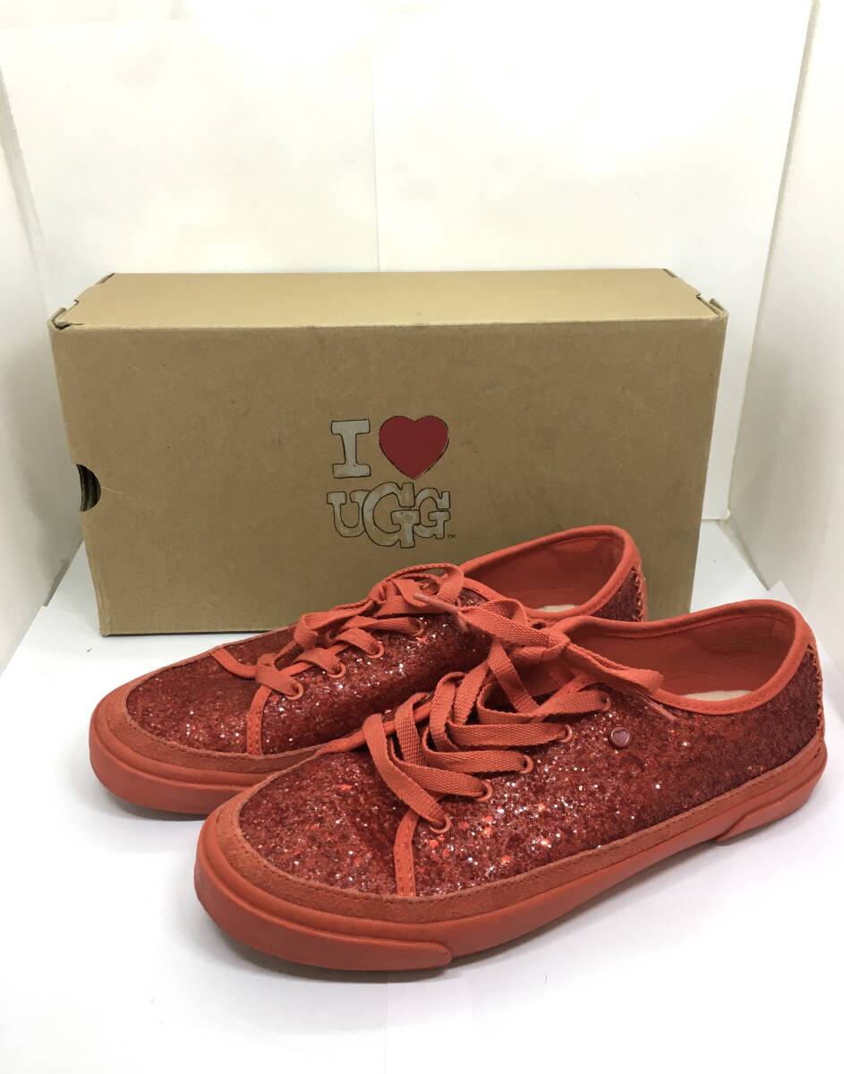 > UGG アグ スニーカー HEART LACE UP GLITTER グリッター ファー 赤 サイズ24cm