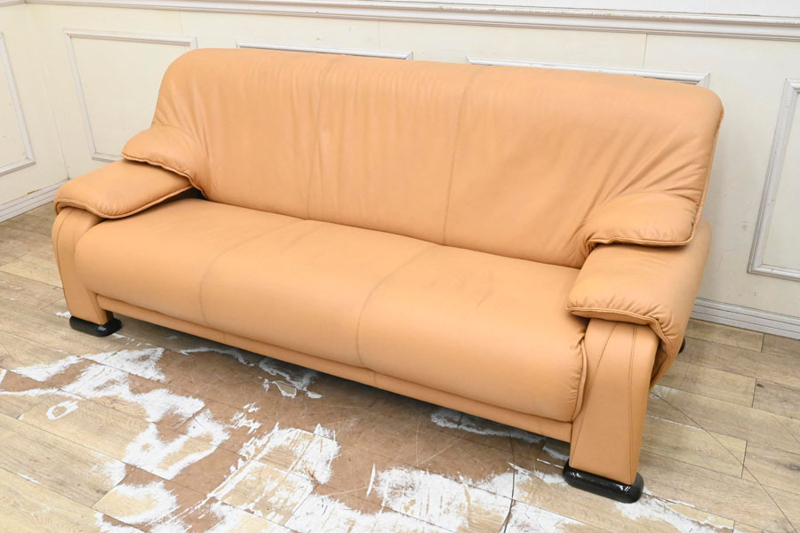> FE20 高級家具の老舗 富士ファニチア 総本革 ハイバック トリプルソファ 三人掛けソファ 長椅子 3P