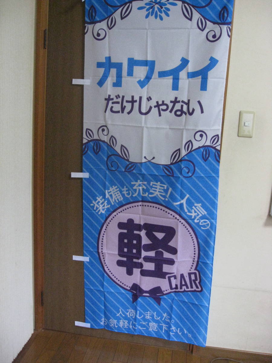 - 新品70×180cm・のぼり旗★車★カワイイ軽 青★中古車販促品★いらっしゃいませ★送料350円K-203