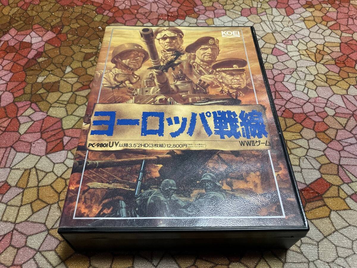 > 光栄 ヨーロッパ戦線 第二次欧州大戦を再現 PC-9801版(3.5インチFD4枚 パッケージ、ハガキ、説明書。起動確認済) 送料込み