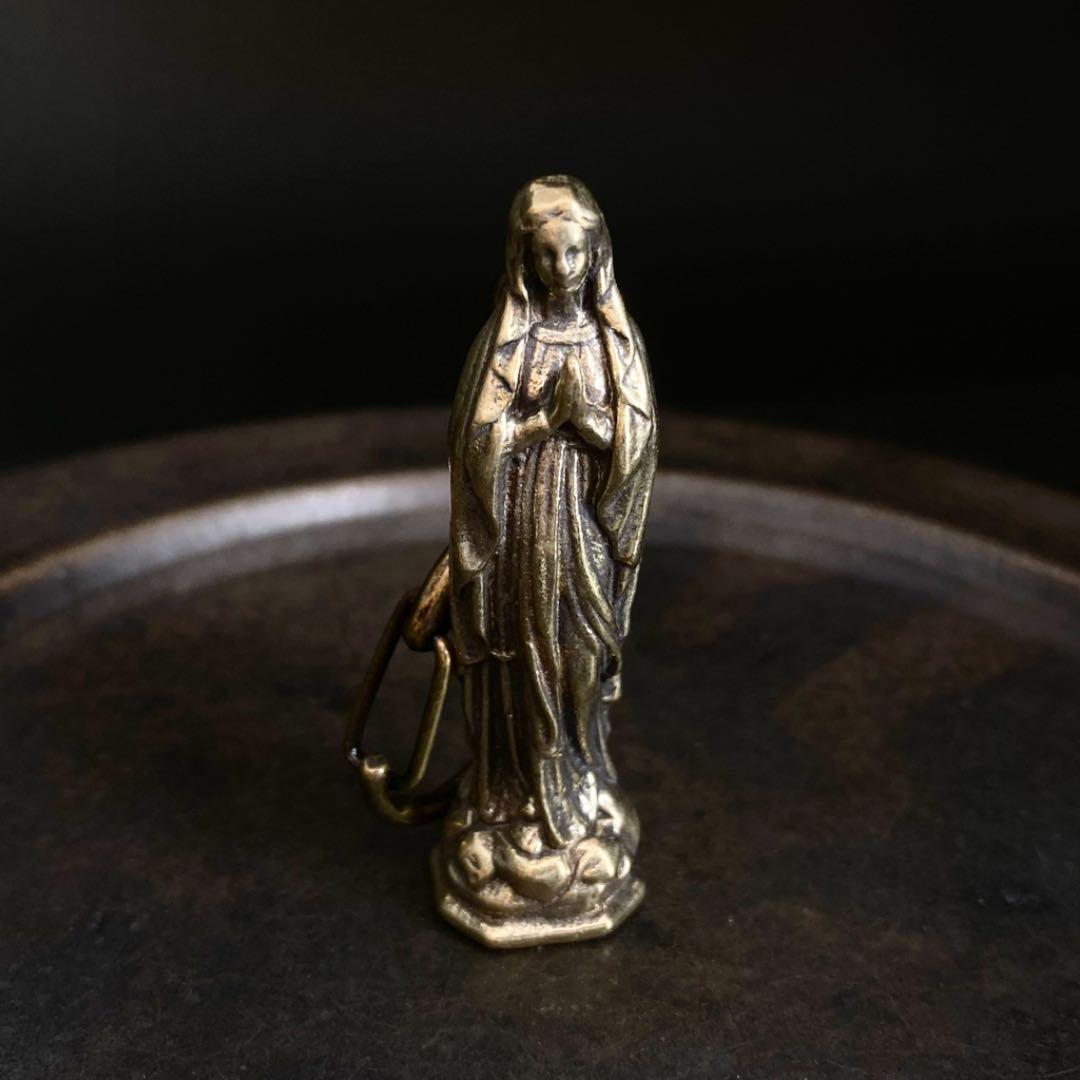 > 135 真鍮 キーホルダー 聖母 マリア ビンテージ 風水 金運 開運 レトロ アンティーク 真鍮製 チャーム アクセサリー パーツ ハンドメイド