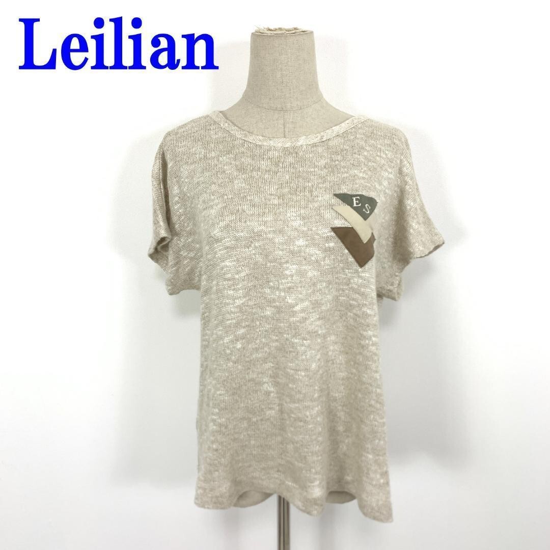 - レリアン 半袖ニット ベージュ アクリルLeilian ミックスニット DORMEUIL リネン 9 C3549