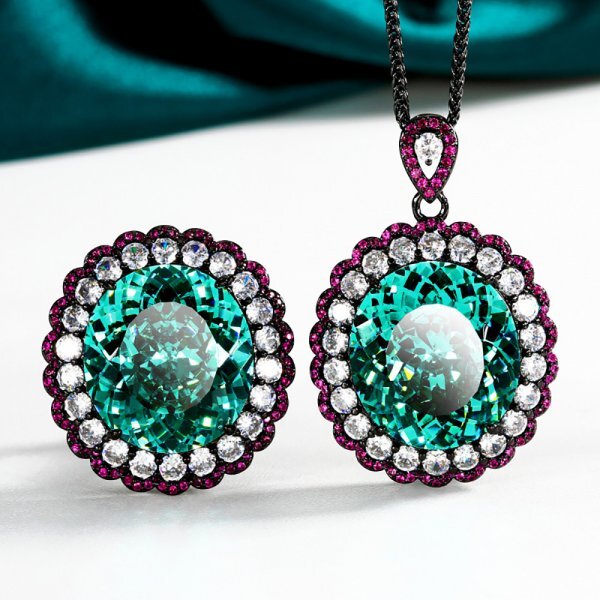- 【価格の問合せのみで値下げ】高級 グリーントルマリンジュエリーセット、残り時間4日までに最初に入札すると開始価格で購入可能 Kn