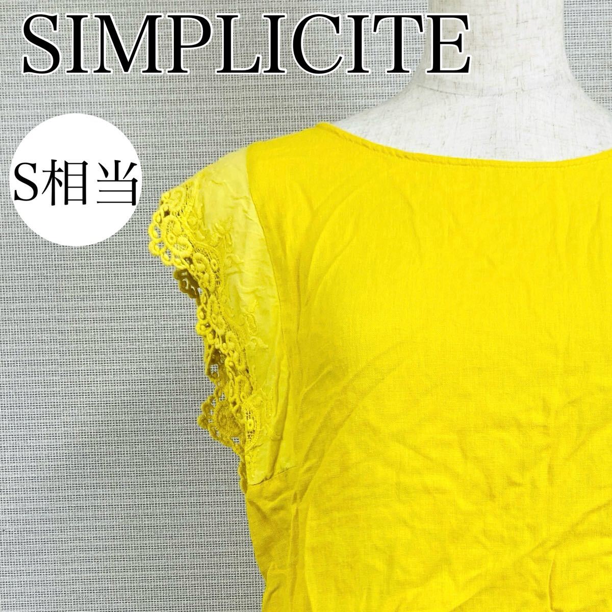- 【AA4095】 SIMPLICITE シンプリシテェ S相当 トップス カットソー プルオーバー 袖レース フレンチスリーブ イエロー(黄色) レーヨン 麻
