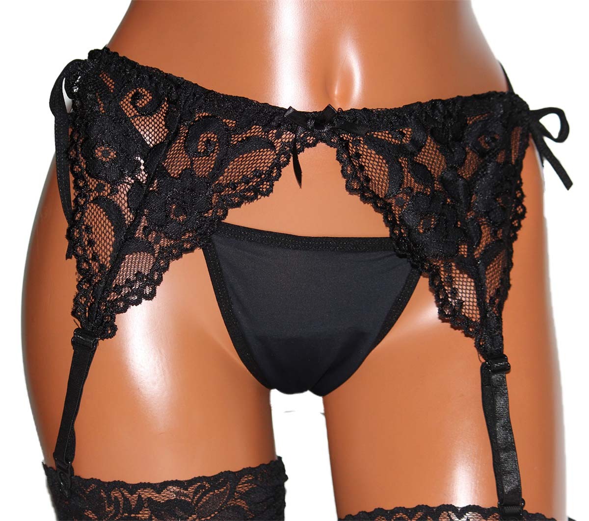 - NA ガーターベルト 紐Tバック レースストッキング 3点 セット セクシー ランジェリー ガーター レディース 122 黒 ローター 収納有