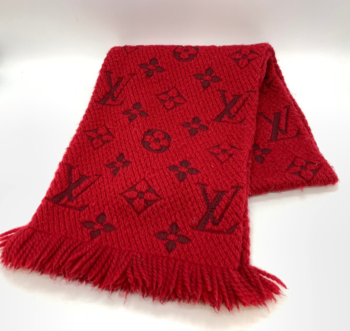 - LOUIS VUITTON ルイヴィトン エシャルプ ロゴマニア マフラー M72432 全長:1.53m レッド 赤【現状品】[841-0805-2E11]