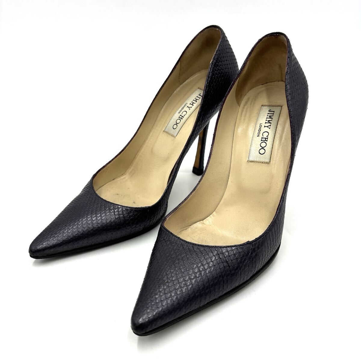 - B * イタリア製 '高級感溢れる' JIMMY CHOO ジミーチュウ 本革 パイソン型押し ヒール / パンプス EU37.5 23.5~24cm レディース シューズ